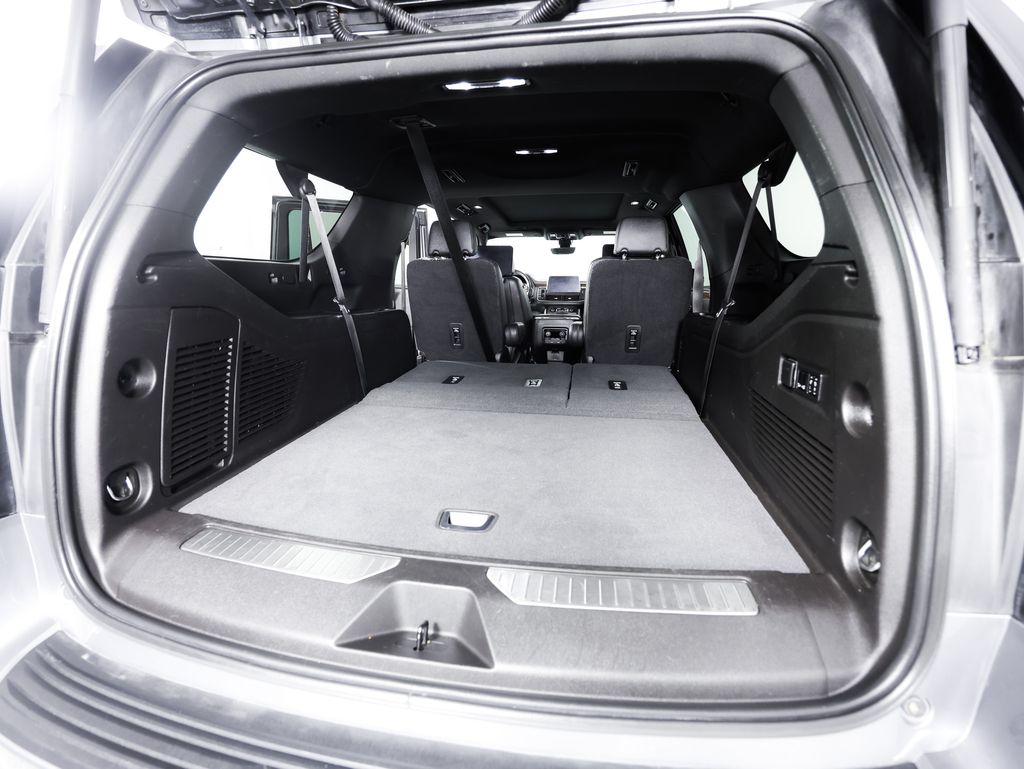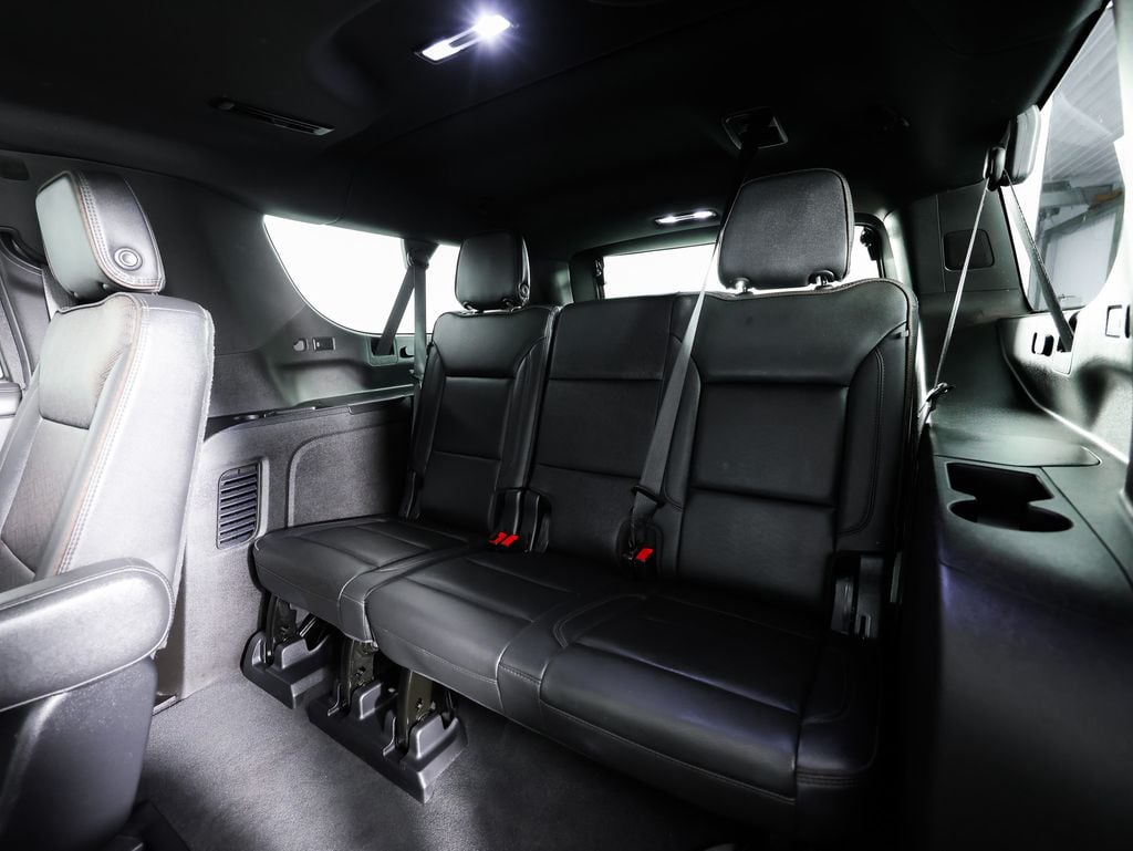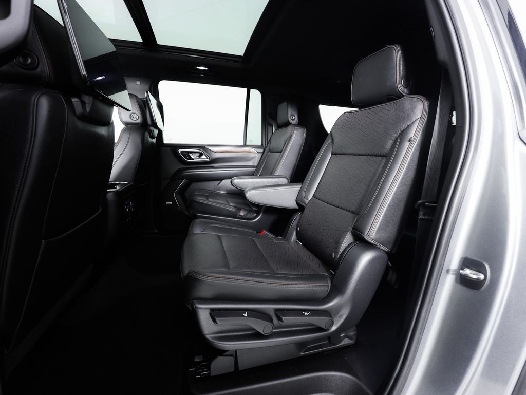 The Suburban's spacious and well-appointed interior is a true sanctuary on the road. Luxurious perforated leather seating, heated and ventilated front seats, and a heated steering wheel ensure maximum comfort, while the Bose premium audio system and Rear Seat Media System keep everyone entertained. The power-folding third-row seat and power liftgate make accessing the generous cargo area a breeze.